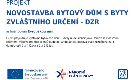 Domov se zvláštním režimem - pobytová sociální služba bude určena pro 18 klientů.