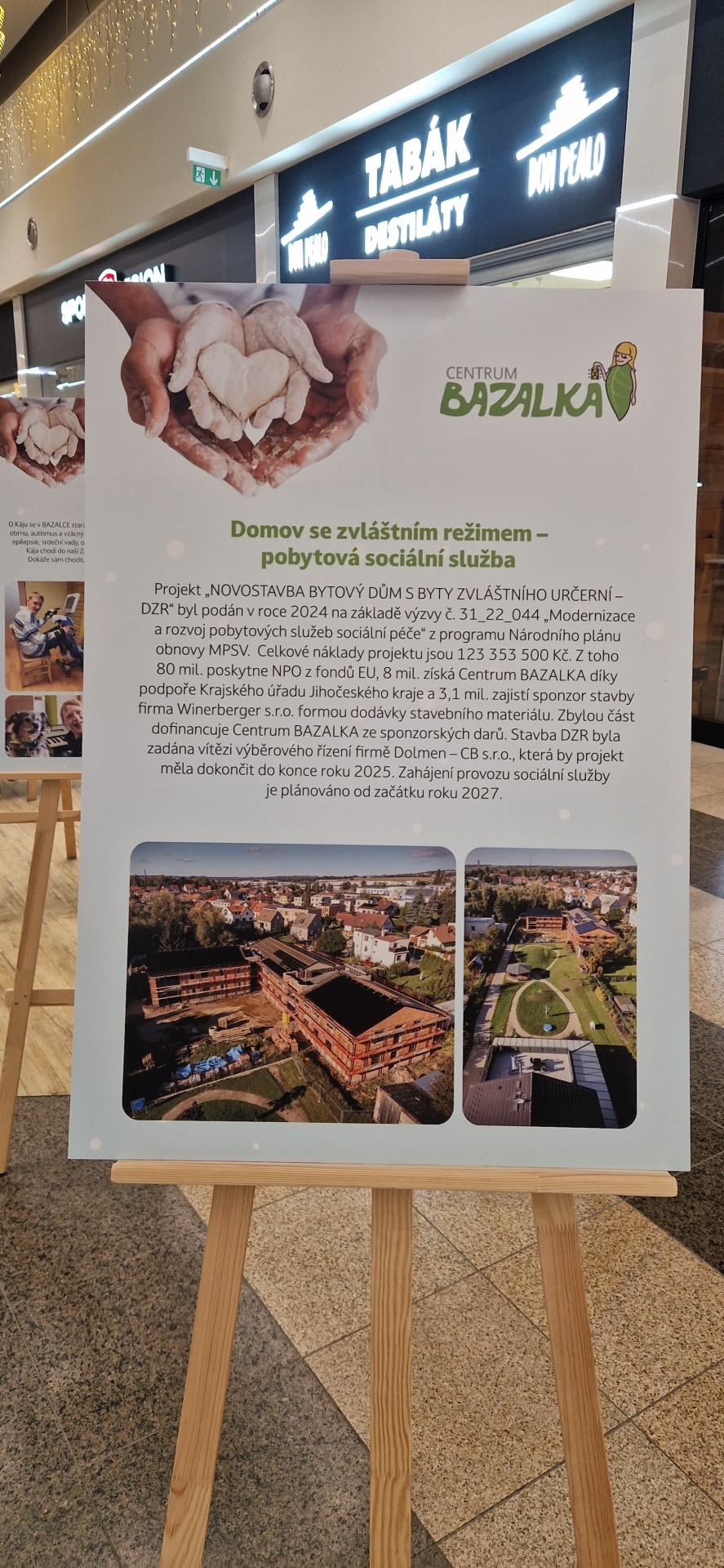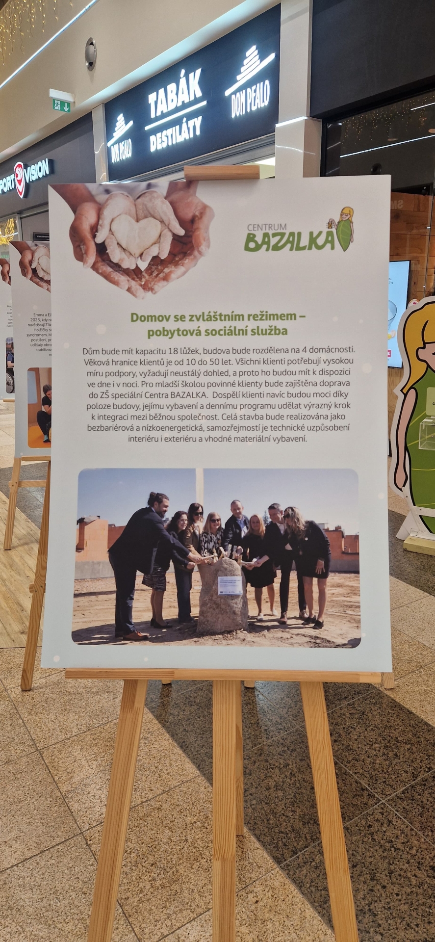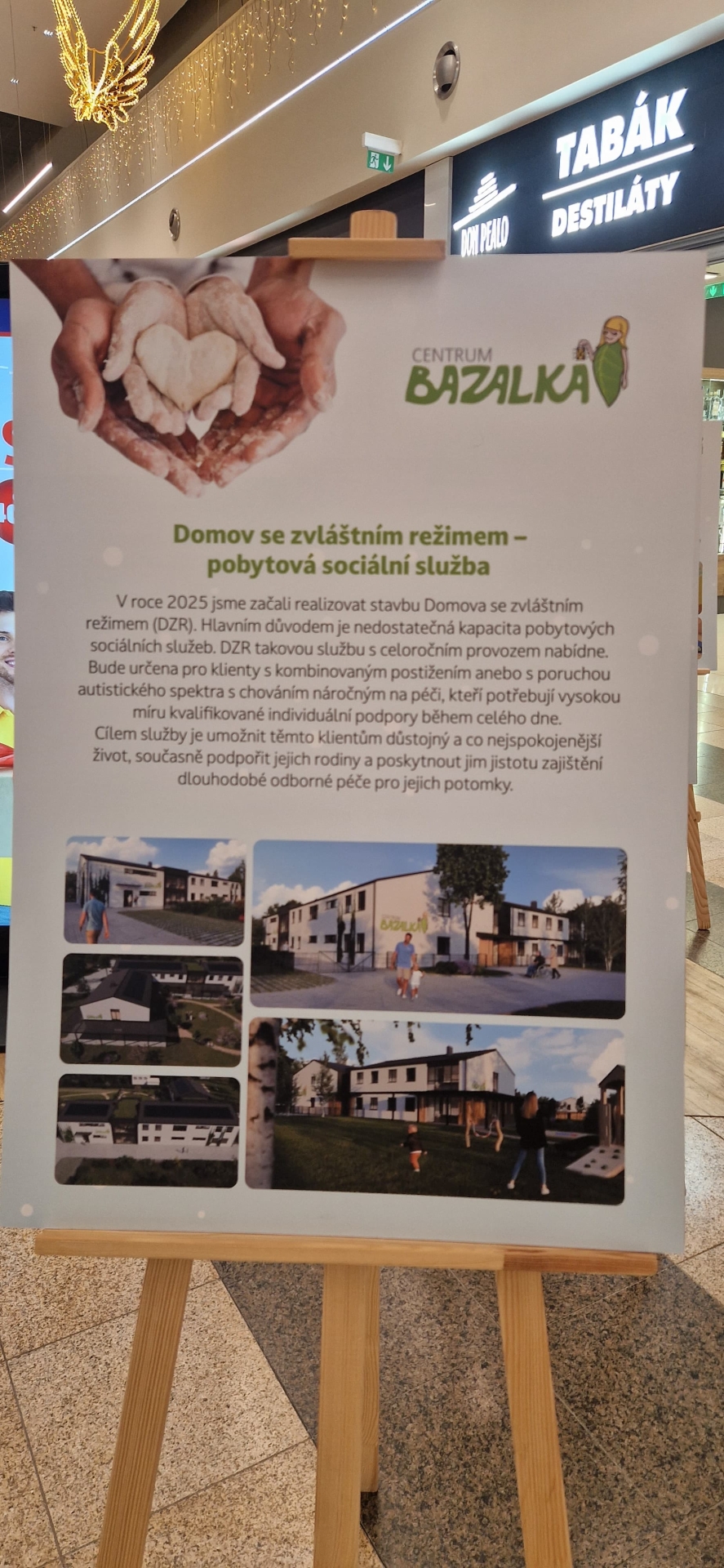 Na obchodní pasáži právě probíhá výstava o nově budovaném Domově se zvláštním režimem, který nabídne 18 klientům s těžkým postižením bezpečný a láskyplný domov s celoroční péčí.
